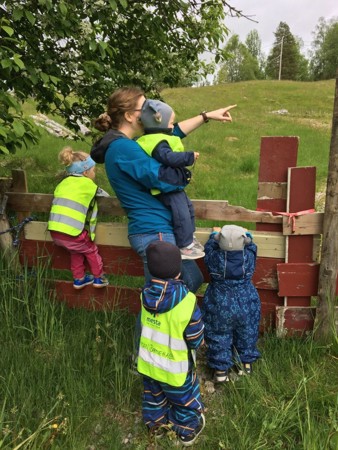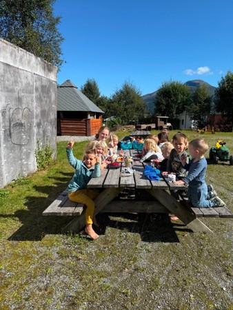 Vi legg til rette for variert leik inne og ute, med rom, tid og materiale som inspirerer til fantasi, samarbeid og glede. Vaksne deltek når det trengst – for å støtte, løfte fram idear og hjelpe barna vidare. Vi reflekterer jamleg saman i personalgruppa for å sikre at alle barn får gode moglegheiter til å vere med.